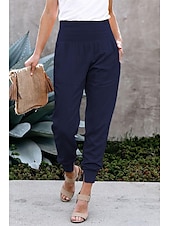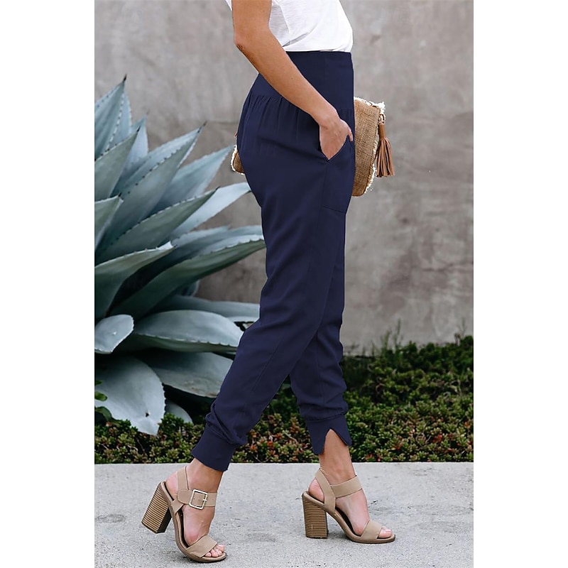 More information about Women's Pants Trousers Jogging Pants Fashion Ankle-Length Plain Side Pockets Breathability smooth Micro-elastic Casual Daily Black Pink Navy Blue Green Spring & Summer Regular Fit