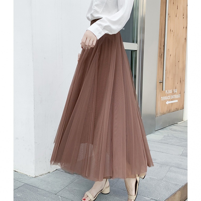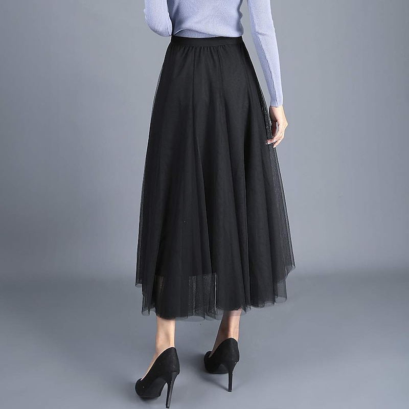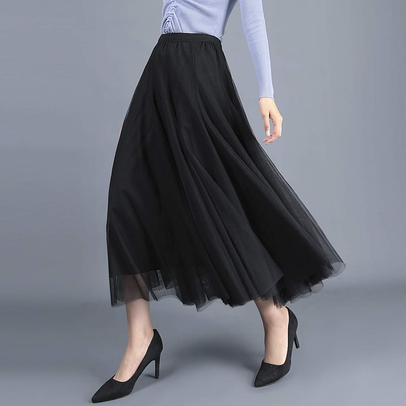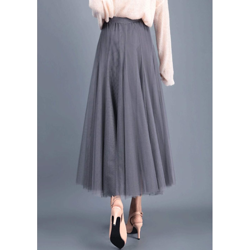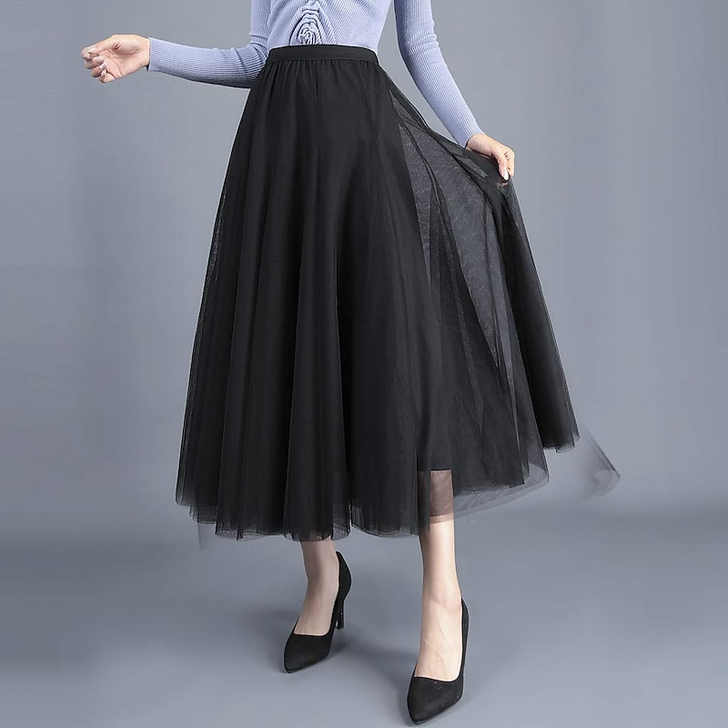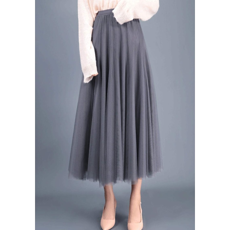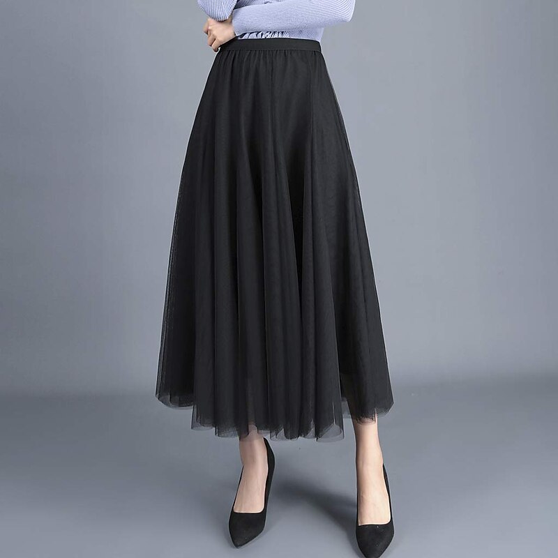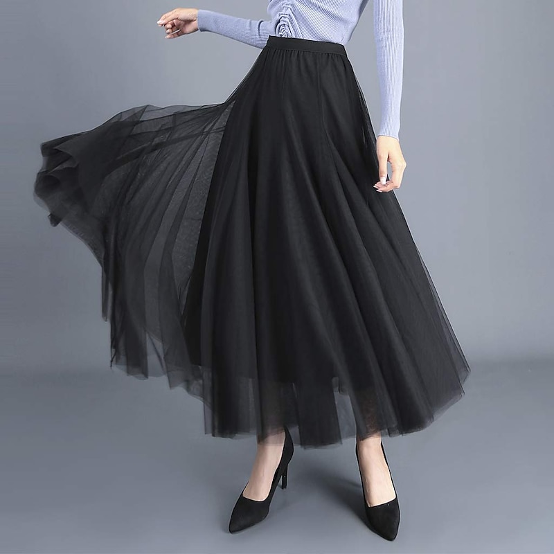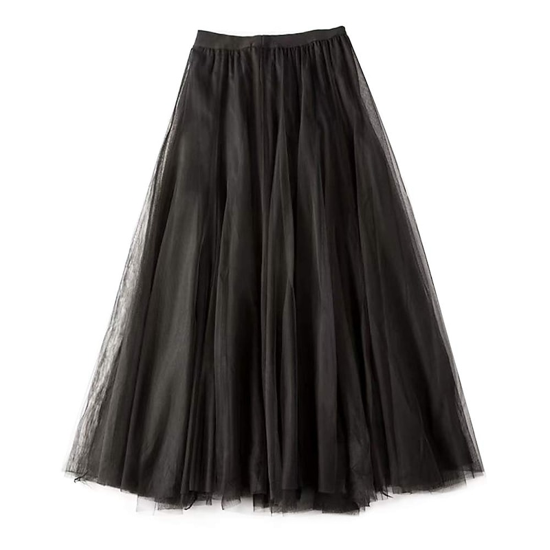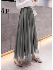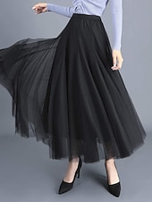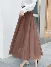 Women's Skirt & Dress Swing Tutu Long Skirt Maxi Skirts Pleated Layered Tulle Solid Colored Street Prom Summer Elegant Vintage Black Pink Khaki Beige