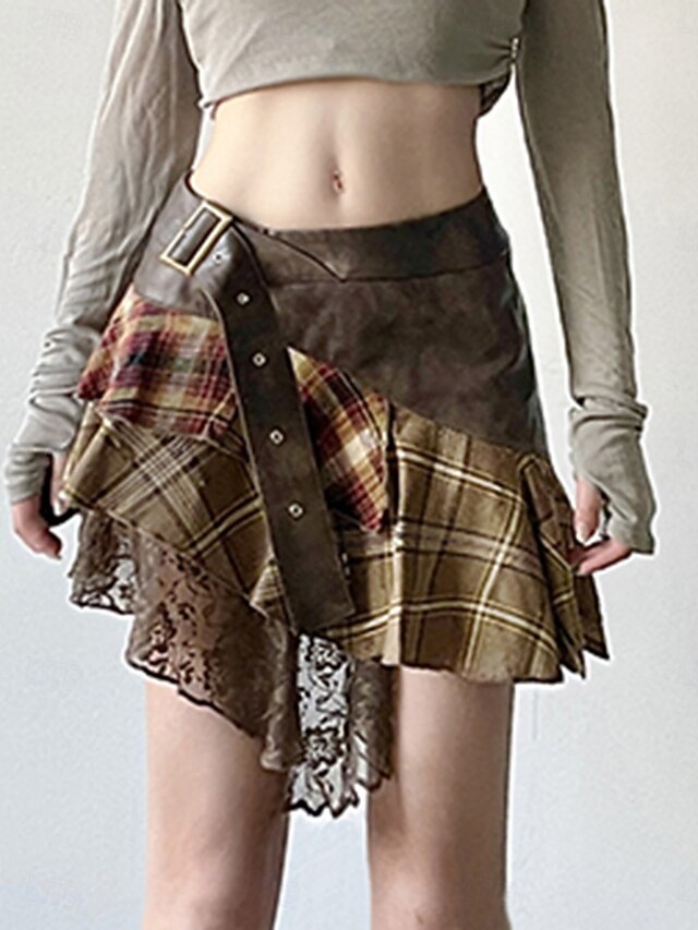 This Women's Skirt A Line Fashion Casual Mini High Waist Skirts Plaid Irregular Hem Micro-elastic Street Daily Brown Summer Polyester combines elegant design with practical functionality. Every detail has been carefully considered to ensure you get the top possible experience. The top-grade construction means this product will serve you well for years to come.