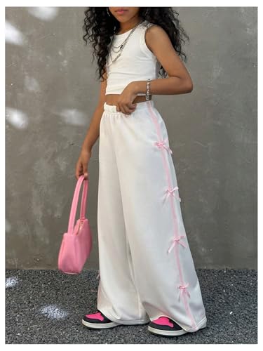 in-demand ! Floerns Girl's Y2k Bow Side Sweat Pants Elastic Waist Straight Leg Street Sweatpants