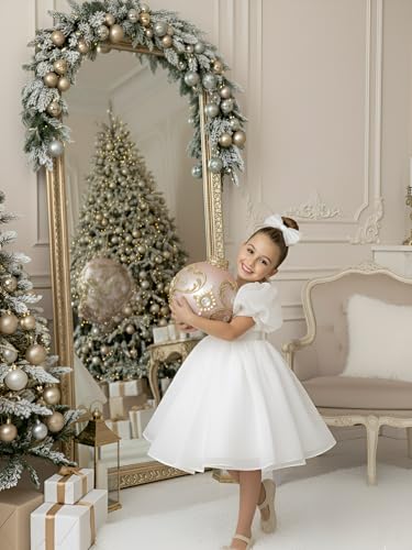 in-demand ! 2Bunnies Girls Baby Toddler Puff Sleeve Organza Tulle Tutu Twirly Babydoll Flare Ball Gown Princess Flower Girl Dress
