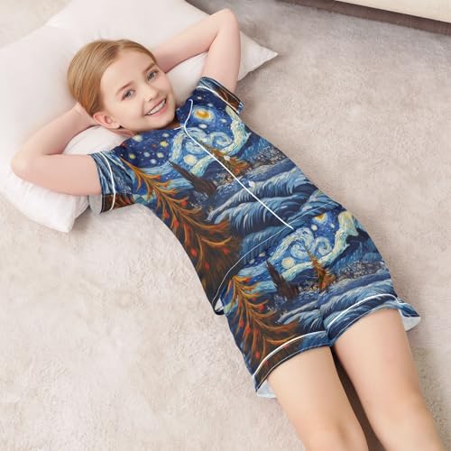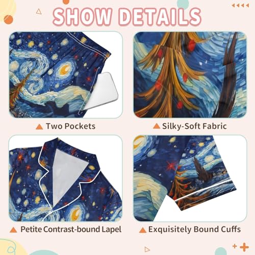 Why Choose ALAZA Hipster Van Gogh Starry Night Satin Pajamas Set Short Sleeve Button Down Sleepwear Summer Pjs 2 Piece?