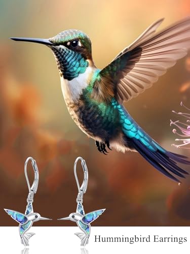 Dreamboat Hummingbird Bird Leverback Earrings for Women 925 Sterling Silver Abalone Shell Dangle Drop Earring Jewelry Gifts for Hummingbirds Lovers