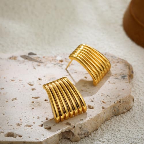 Item width: 0.66 inchesMaterial: CopperMetal type: CopperBack Finding: Push BackEarring design: StudGem type: No GemstoneDESIGN FEATURES: Elegant multi-layered design with 8 parallel curved bands creating a latest geometric statement pieceDIMENSIONS: Each earring measures 0.78 inches in height and 0.66 inches in width, perfect for everyday wearLIGHTWEIGHT COMFORT: Weighs only 8.2g total, making these earrings comfortable for extended wear without strainVERSATILE STYLE: Square-shaped vintage-inspired studs complement both casual and formal outfits with their trendy appealSECURE FIT: Classic post back closure ensures these statement earrings stay securely in place throughout the day Perfect for everyday use. first-class materials and excellent craftsmanship ensure long-lasting durability.