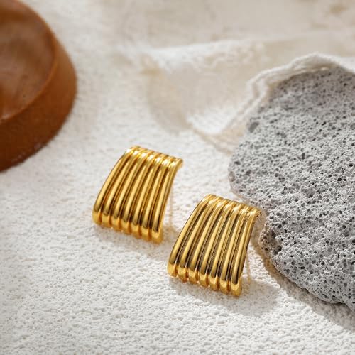 Gold Chunky Statement Stud Earrings for Women,Square Vintage Earrings Trendy