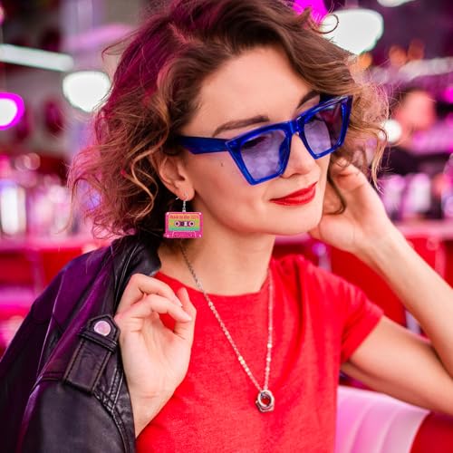 • Retro Trendy Design: Inspired by the iconic 80s cassette tapes, these 80s earrings are crafted from high-quality acrylic material to create a lightweight yet fashionable accessory that instantly transports you back to that vibrant era