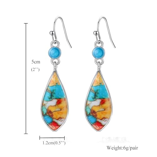• distinctive Design: These dangle earrings feature a striking teardrop shape accented with vibrant turquoise and earth-toned hues