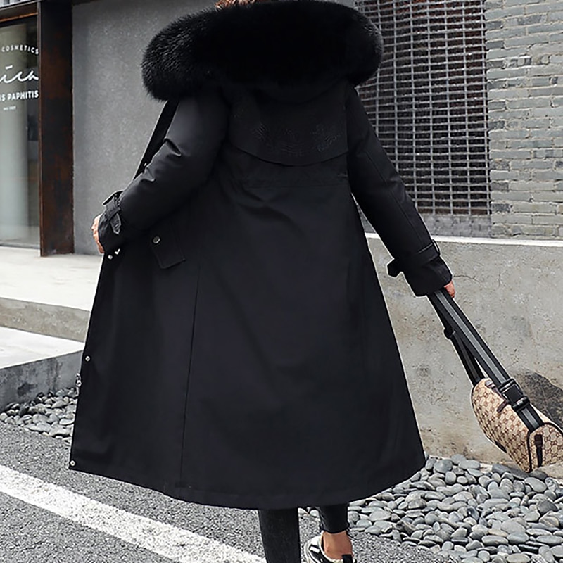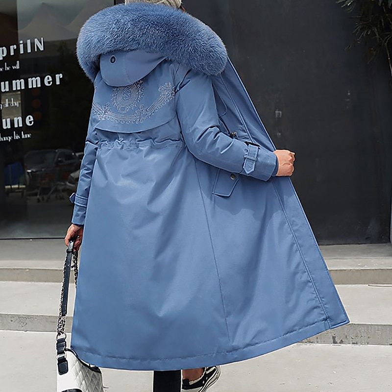 Highlights [Fabric]: Crafted from a high-quality polyester blend, this women's winter coat offers a durable and insulating fabric that ensures warmth during the cold seasons. Its micro-elastic properties provide comfort and flexibility, making it ideal for outdoor activities. [Fit]: Designed in a regular fit, this coat offers a balanced silhouette that combines style and practicality. The long length provides an elegant look while ensuring extra coverage and warmth against chilly winds. [Design Highlights]: This coat features a luxurious fur trim that adds both warmth and a touch of sophistication. It includes convenient design elements such as a zipper placket, drawstring waist for an adjustable fit, and fleece lining for additional warmth. The hoodie neckline adds functionality and a casual touch, perfect for various weather conditions. [Occasions]: Versatile and chic, this coat is suitable for a range of occasions. Whether you're stepping out for a daily routine, attending a street event, or enjoying Valentine's Day outdoors, this coat blends style with functionality, making it a perfect choice for streetwear and casual settings. [Size Range]: Available in a variety of colors including Blue, Black, Red, Light Green, and Khaki. The coat comes in sizes M, L, XL, XXL, and 3XL, catering to a wide range of body types. Perfect for everyday use. finest materials and excellent craftsmanship ensure long-lasting durability.