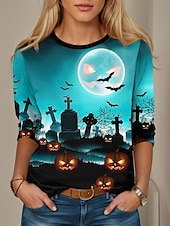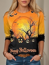More information about Halloween Women's T shirt Pumpkin Graphic Vintage fashionable Casual Long Sleeve Crew Neck Regular Tops Daily Print Black Blue Orange Fall Winter