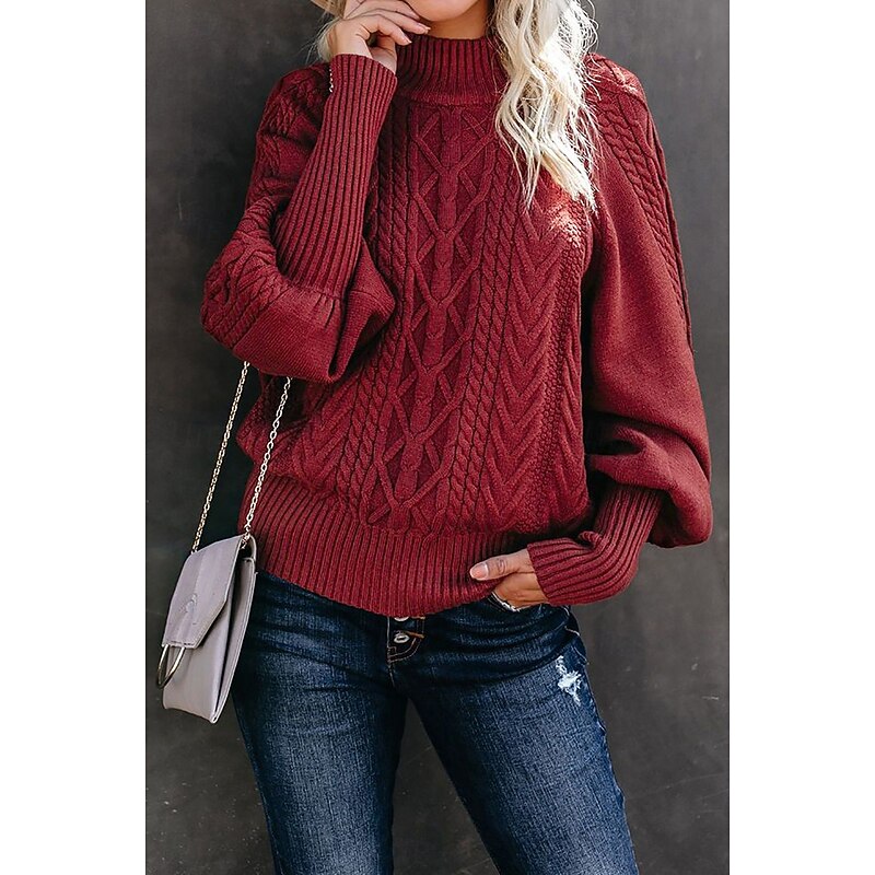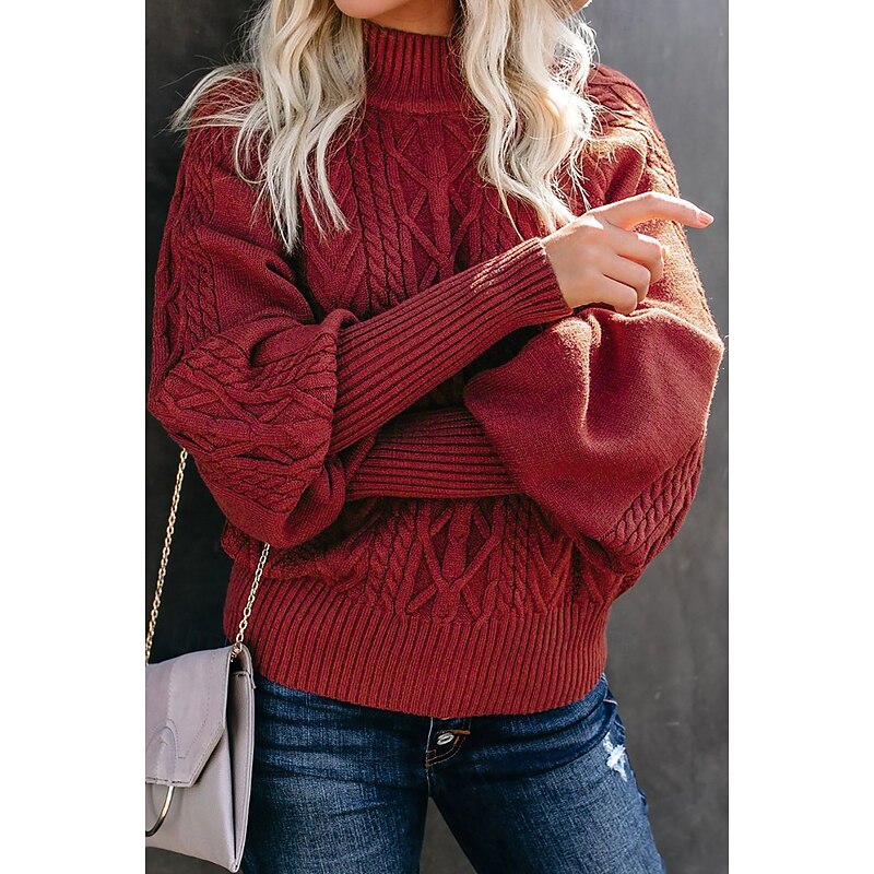 Highlights [Fabric] : Expertly crafted from a cozy and soft fabric blend, this women's sweater ensures warmth and comfort throughout the fall and winter seasons. The material's stretchiness provides ease of movement and a tailored fit. [Silhouette] : Designed with a regular fit and a long length, this sweater offers both style and comfort, making it suitable for daily wear. The slight puff in the long sleeves adds a latest touch to the classic look. [Design Highlights] : Featuring a chic mock neck, this sweater showcases a detailed cable-knit pattern on the front and sleeves, contributing to its sophisticated appearance. The hot pink shade adds a vibrant pop of color to your wardrobe, while the intricate knit design enhances the sweater's texture and elegance. [Occasions] : Perfect for work, this sweater is versatile enough for various occasions, from daily errands to casual gatherings. Pair it with jeans or skirts to create effortlessly fashionable ensembles that suit both casual and elegant settings. [Size Range] : Available in M, L, and XL, this sweater accommodates a range of body types, offering a flattering fit for everyone. Perfect for everyday use. finest materials and excellent craftsmanship ensure long-lasting durability.