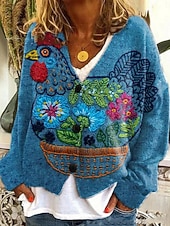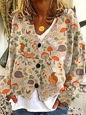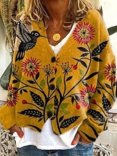 More information about Women's Cardigan Sweater Knitted Ribbed Button Front V NeckLong Sleeve Lightweight Elegant Vacation Vintage Floral Print Regular Tops Knit Home Daily Holiday Blue Orange Fall