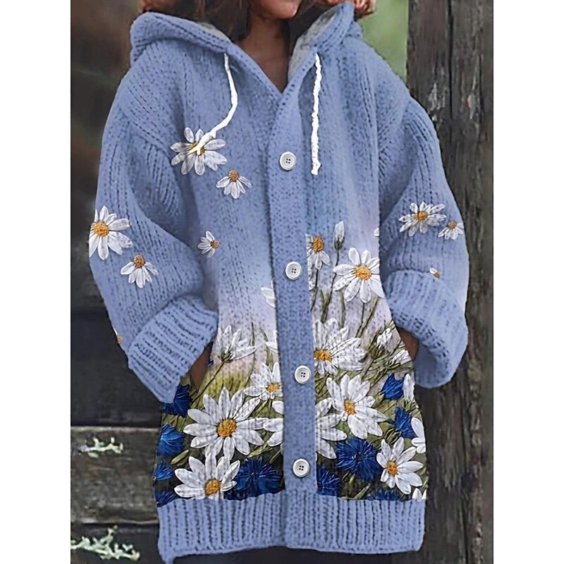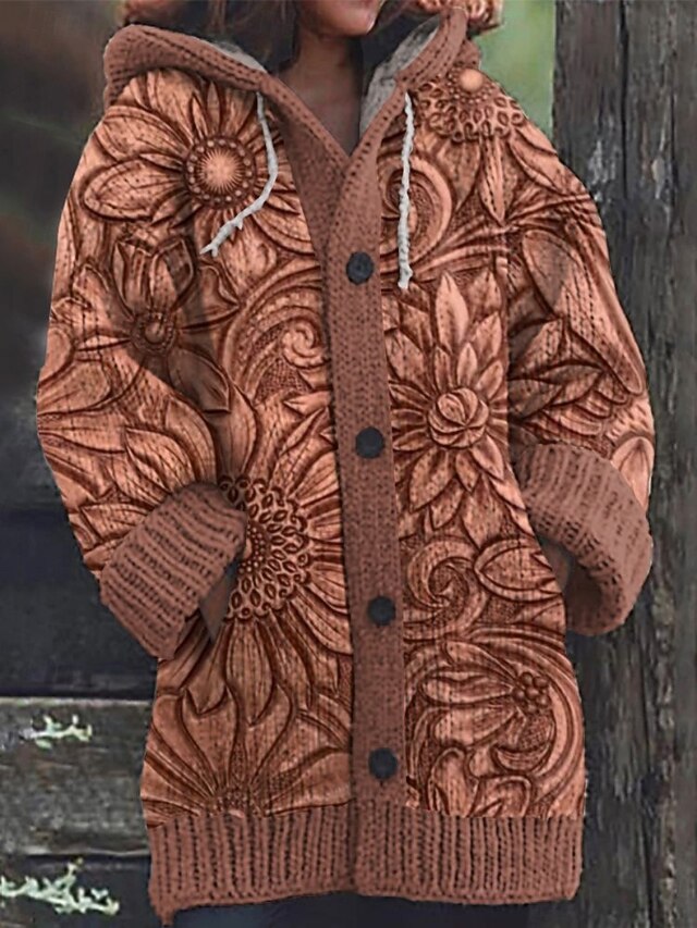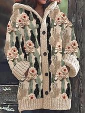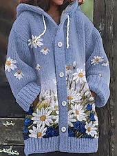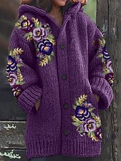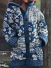 This Women's Cardigan Vacation Daily Floral Ribbed Hooded Knitted Print Front Pocket Long Sleeve Regular Tops Knit Outdoor Daily Holiday Yellow Royal Blue Fall Winter combines elegant design with practical functionality. Every detail has been carefully considered to ensure you get the top possible experience. The top-grade construction means this product will serve you well for years to come.