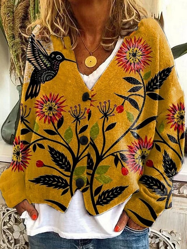 This Women's Cardigan Vacation Daily Casual Floral Ribbed V Neck Buttons Print Long Sleeve Regular Tops Knit Outdoor Daily Holiday Blue Orange Fall Winter combines elegant design with practical functionality. Every detail has been carefully considered to ensure you get the top possible experience. The top-grade construction means this product will serve you well for years to come.