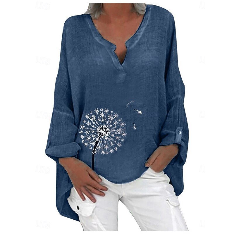 Why Choose Women's Cotton Linen Shirts Floral Basic Casual Long Sleeve Shirt Collar Regular Tops Daily Print Pink Navy Blue Fuchsia Green Summer Fall?