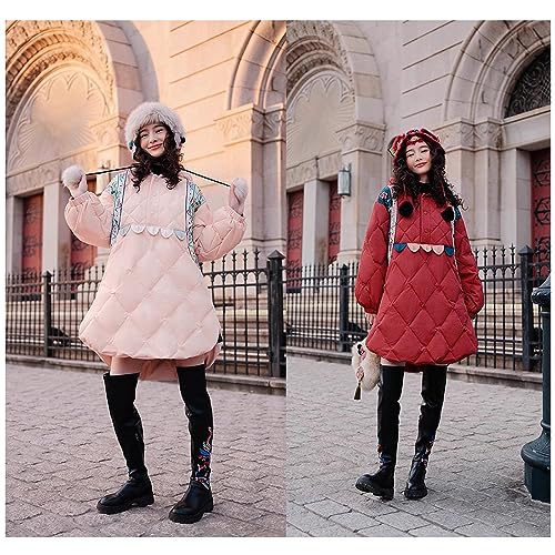 • Fashionable and elegant: the sides of the down jacket are embroidered with contrasting colors, and the decorations are divided into petals to make the overall color richer; the whole is made of rhombic quilting to keep cozy without being bloated, and it also adds a gentle temperament to the design