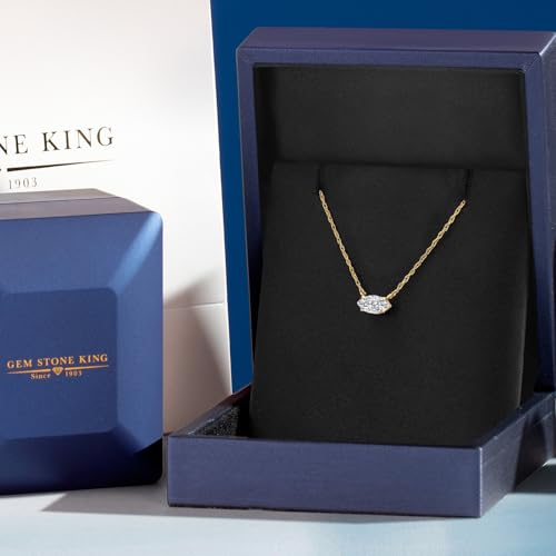 Gem Stone King 10K Yellow Gold Lab Grown Diamond Pendant Necklace For Women | Marquise Cut | DEF Color | VVS-VS Clarity | Gold Necklace For Women | With 18 Inch Gold Chain