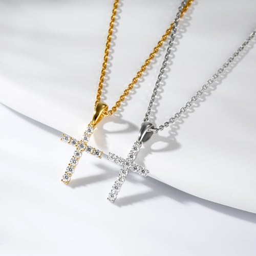 LANE WOODS Moissanite Small Cross Necklace for Women: Dainty Tiny 14K Gold Plated Sterling Silver Pendant Simulated Diamond Layered Chain Necklace Minimalism Jewelry