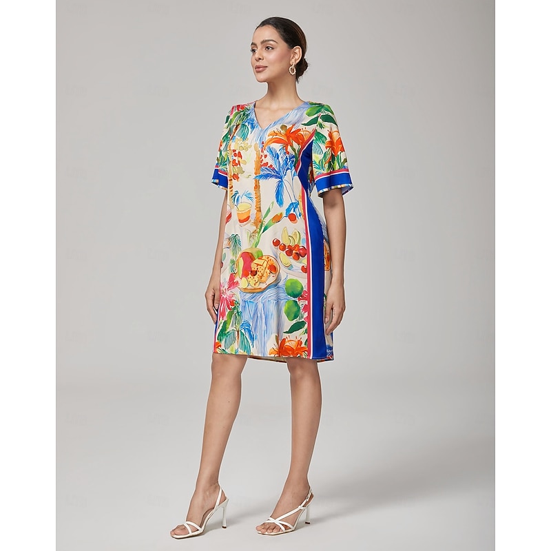 in-demand ! Fruit Floral Straight V-neck Mini Dress