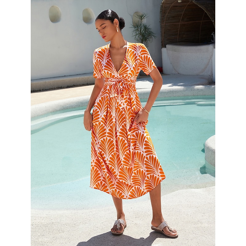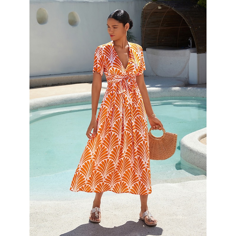 This Women's Midi Dress Maxi Dress Orange Short Sleeve Geometric With Belt Spring & Summer V Neck Pattern Dress S M L combines elegant design with practical functionality. Every detail has been carefully considered to ensure you get the top possible experience. The top-grade construction means this product will serve you well for years to come.