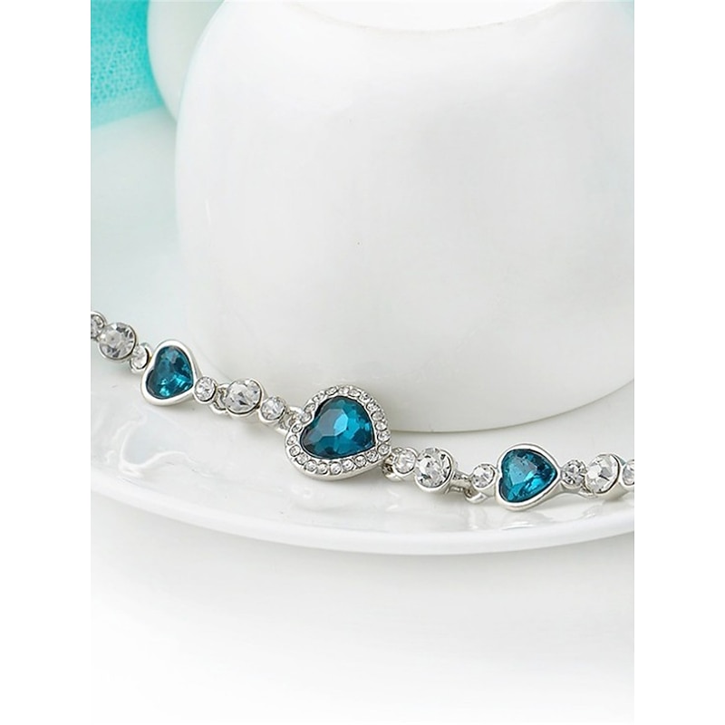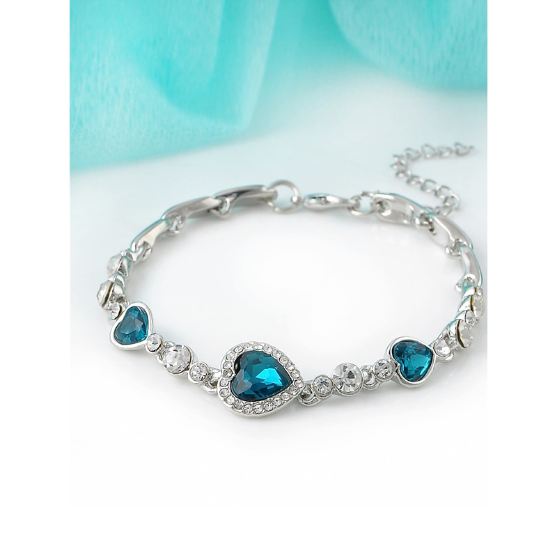 Highlights [Fabric] Crafted with high-quality alloy, this women's bracelet features a lustrous finish that complements its sophisticated design, ensuring both durability and elegance for everyday wear. [Design Highlights] The bracelet showcases intricate heart-shaped blue gemstones surrounded by clear crystals, offering a captivating sparkle. Its contemporary design includes an adjustable chain for a seamless fit, adding flexibility and comfort to its sophisticated appeal. [Occasions] Perfect for daily wear, street outings, holiday events, and weekend adventures, this bracelet adds a hint of sophistication and a pop of color to any outfit, whether casual or formal. [Versatile Style] Suitable for year-round wear—including spring, summer, fall, and winter—this bracelet is a modern accessory for any occasion, effortlessly enhancing your fashion statement. [Size and Fit] Available in a universal one-size option, the bracelet's adjustable chain ensures a comfortable fit for various wrist sizes, making it a versatile addition to your jewelry collection. Perfect for everyday use. first-class materials and excellent craftsmanship ensure long-lasting durability.