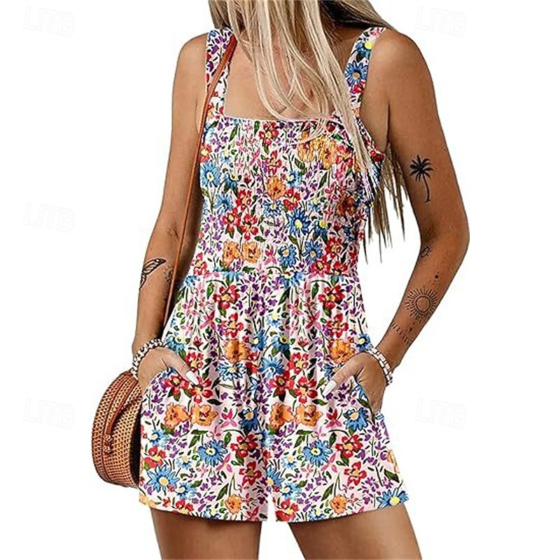 Why Choose Women's Normal Romper Casual Floral Sleeveless Baggy Shorts Print Street Daily Regular Fit Black Light Green Pink Summer?