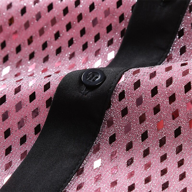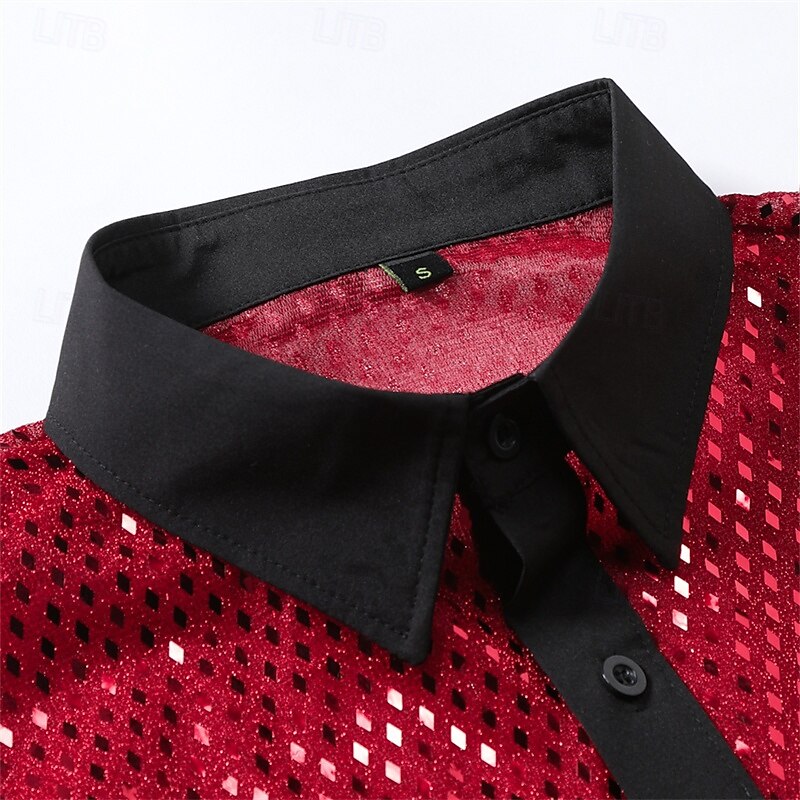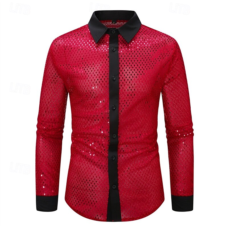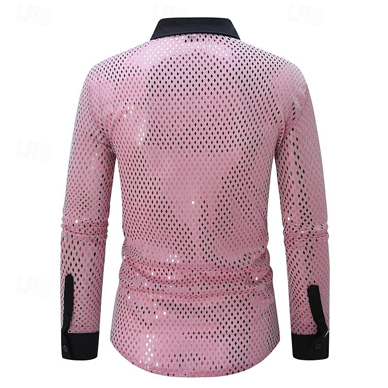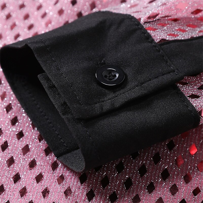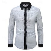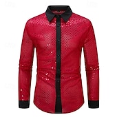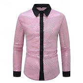 More information about Men's Shirt Casual Shirt Button Up Shirt Prom Shirt Disco Shirt White Pink Red Long Sleeve Sequin Lapel Performance Party Evening Wear Sequins Clothing Apparel Fashion Trendy