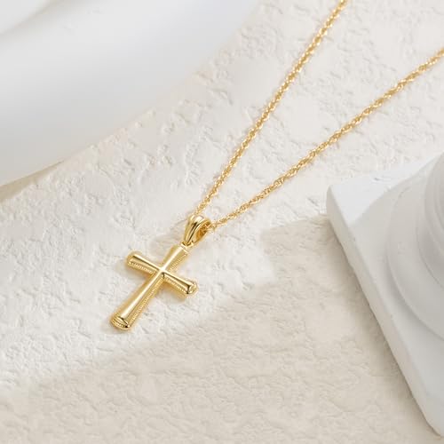 Material: Yellow GoldMetal type: Yellow GoldClasp type: LobsterGem type: No Gemstone[SUBTLE SHINE WITH ELEGANT DETAILS] The edges of the 14k gold cross necklace for women are adorned with tiny round beads, like starlight scattered along its frame. These delicate accents reflect light gently, giving the simple gold plated cross necklaces for women a refined sparkle that draws the eye[SOFTNESS YOU CAN FEEL] The cross pendant is carefully polished with rounded edges and gentle curves that echo feminine grace. This thoughtful design makes the cross necklace gold plated cross chain comfortable against the skin and transforms the traditional symbol into a wearable expression of warmth and elegance[ADJUSTABLE TWISTED CHAIN] Paired with a 42cm + 8cm adjustable twisted rope chain, the dainty cross necklace for women adapts easily to different necklines. Whether layered over a turtleneck or with a V-neck, the textured chain and cross pendants for womens cross necklace create a naturally stylish statement[MEANING WRAPPED IN ELEGANCE] Combining a symbolic cross with an adjustable chain, this cross necklace women makes a heartfelt present. Whether your friend prefers minimalist or vintage fashion, this cross necklaces for women blends seamlessly into any wardrobe—offering style and sentiment she'll wear close to heart[CURATE YOUR LOOK] With the chain cross’s vintage-inspired texture, this cross necklace for women gold pairs beautifully with slim chains for a relaxed layered look, or with beaded pieces for a bold, eclectic style. Whether worn alone or stacked, the cross gold plated necklace for women offers endless styling potential Perfect for everyday use. first-class materials and excellent craftsmanship ensure long-lasting durability.