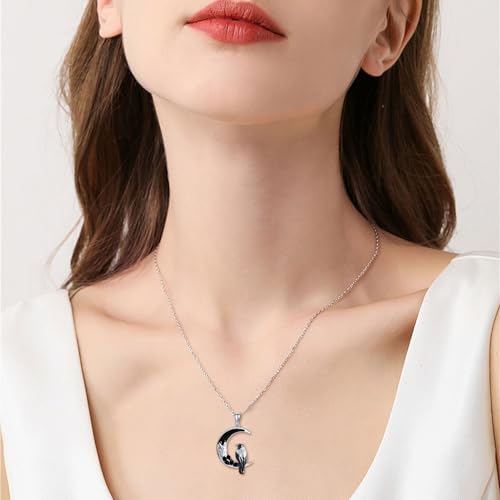 in-demand ! ONEFINITY Raven Crow Wolf Necklace 925 Sterling Silver Crescent Moon Animal Witchy Pendant Necklace Halloween Christmas Jewelry Gifts for Women