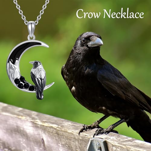 More information about ONEFINITY Raven Crow Wolf Necklace 925 Sterling Silver Crescent Moon Animal Witchy Pendant Necklace Halloween Christmas Jewelry Gifts for Women