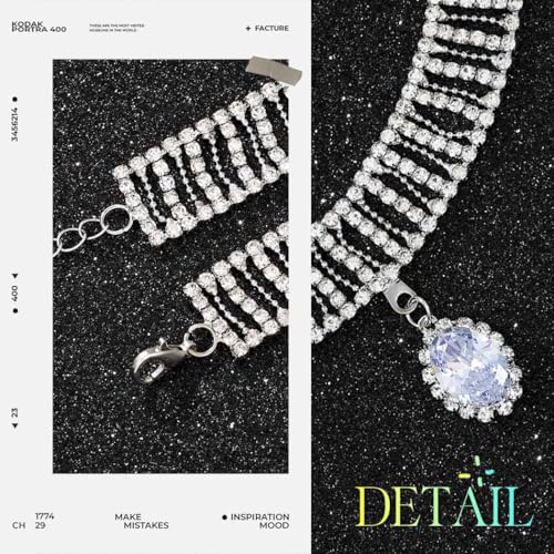 Material: RhinestoneMetal type: RhinestoneClasp type: Hook and EyeChain type: Cable, French RopeGem type: RhinestoneCrystal choker necklace is made of rhinestone,crystal,alloy,Easy and comfortable to wear. Elegant and eyecatching outlook.Silver choker necklaces for women- size is 33cm/12.99in,which have 10cm/3.93in extension chain to adjust the length according to your own needs.Bling choker necklace for women has a unique and charming design for most women,it can improve your eleganceChokers necklace is novel and simple style,which suitable for festival party,prom,summer beach,traveling,nightclub,carnivalDiamond choker necklace can match with shirts,ceremonial dress,cosplay costumes.They will make you stand out Perfect for everyday use. first-class materials and excellent craftsmanship ensure long-lasting durability.
