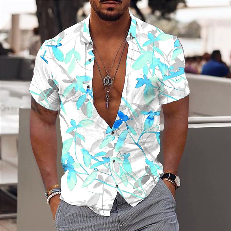 in-demand ! Men's Tropical Flowers Leaves Shirt Summer Hawaiian Shirt Aloha Shirt Short Sleeves Shirt Turndown Fashion Designer Casual Outdoor Street Casual White Yellow Pink 3D Print S M L