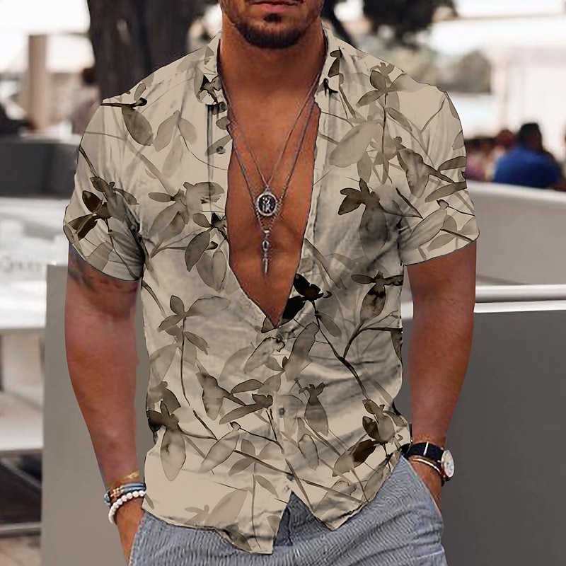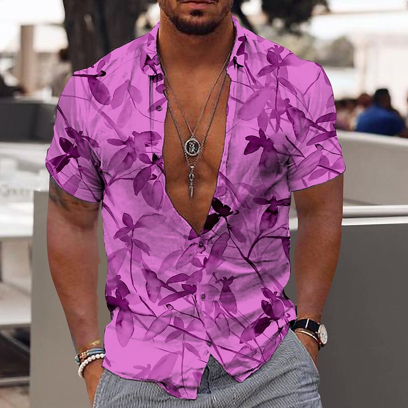More information about Men's Tropical Flowers Leaves Shirt Summer Hawaiian Shirt Aloha Shirt Short Sleeves Shirt Turndown Fashion Designer Casual Outdoor Street Casual White Yellow Pink 3D Print S M L
