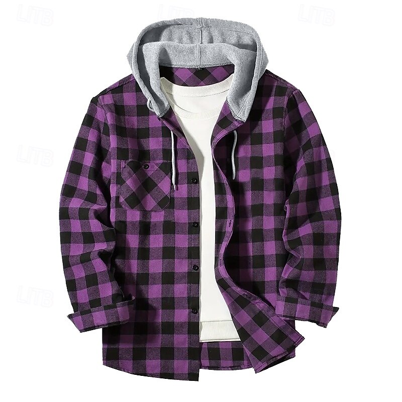 More information about Men's Shirt Flannel Shirt Overshirt Plaid Outdoor Street Red Royal Blue Purple Orange Long Sleeve Hooded Winter Spring & Fall Clothing Apparel