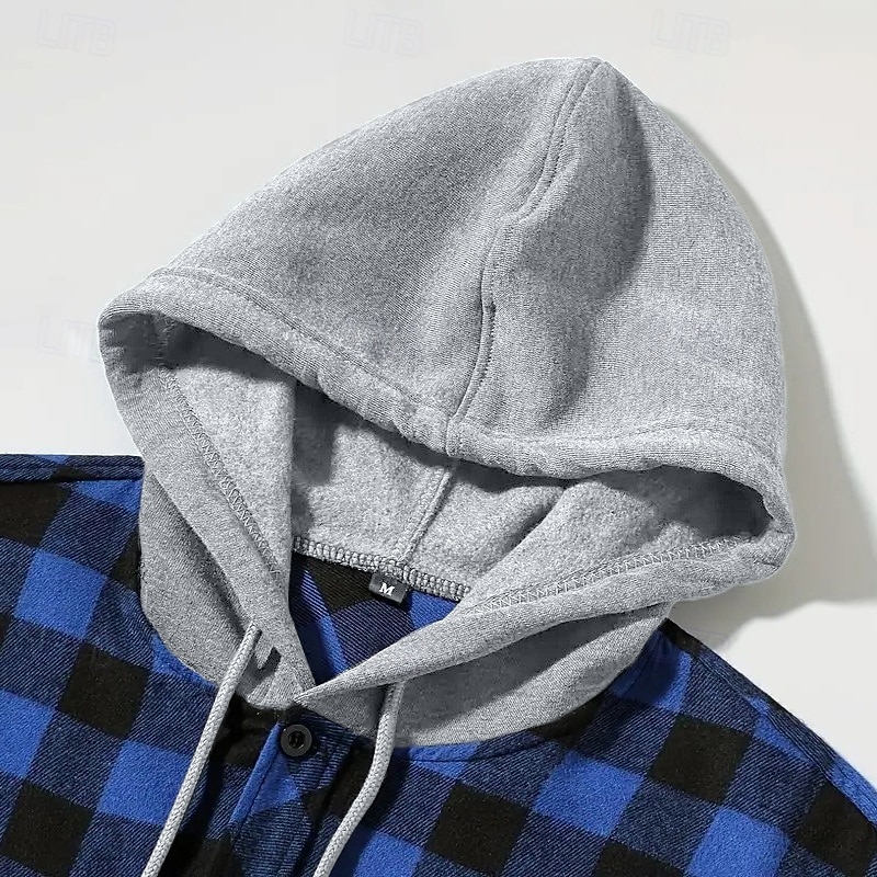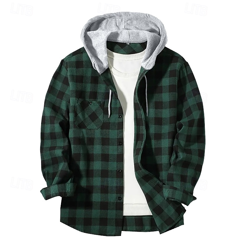 Highlights [Fabric] : Crafted from premium flannel, this men's shirt offers a blend of warmth and comfort, perfect for cooler seasons. The soft and durable material ensures a cozy fit, making it ideal for winter, spring, and fall wear. [Fit] : Designed in an oversized style, this shirt can double as an overshirt, providing ample layering options. The long sleeves can be rolled up or down, offering versatility and a relaxed, casual look. [Design Highlights] : Featuring a timeless plaid pattern in a variety of striking colors, this shirt includes a exceptional hooded neckline with a contrasting heather gray hood. The drawstring on the hood allows for an adjustable fit, adding a contemporary, streetwear-inspired touch. [Occasions] : This flannel shirt is suited for a range of casual settings, including street outings, daily wear, and outdoor activities. Its practical chest pocket adds convenience, while the fashionable plaid print enhances any casual ensemble. [Size Range] : Available in sizes M, L, XL, XXL, and 3XL, this shirt caters to a wide range of body types, ensuring a comfortable and flattering fit for all.