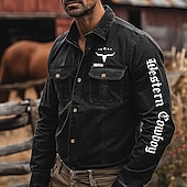 Men's Letter Printed Cowboy Work Shirt Western Shirt Cargo Shirt Long Sleeve Casual Tactical Sports & Outdoor Going out Winter Spring & Fall Turndown Print Black