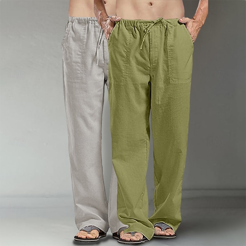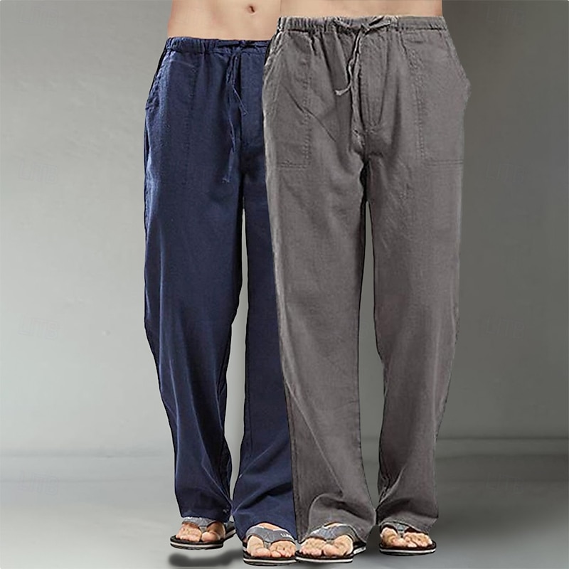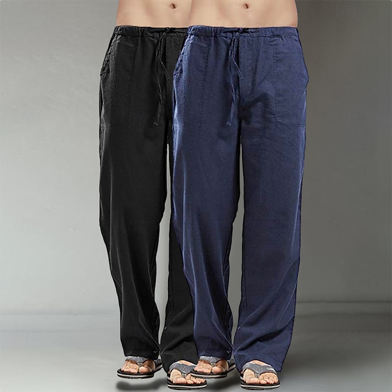 More information about Men's Linen Pants Trousers Summer Pants Baggy Pants Beach Pants Pocket Drawstring Straight Leg Plain Comfort Breathable Full Length Daily Streetwear Fashion Casual / Sporty Black+Navy Blue Navy
