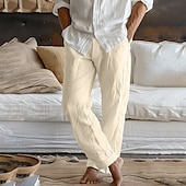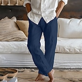 in-demand ! Men's Linen Pants Trousers Summer Pants Beach Pants Elastic Waist Front Pocket Straight Leg Plain Comfort Breathable Full Length Home Yoga Daily Fashion Casual Black White