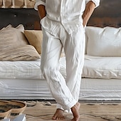 More information about Men's Linen Pants Trousers Summer Pants Beach Pants Elastic Waist Front Pocket Straight Leg Plain Comfort Breathable Full Length Home Yoga Daily Fashion Casual Black White