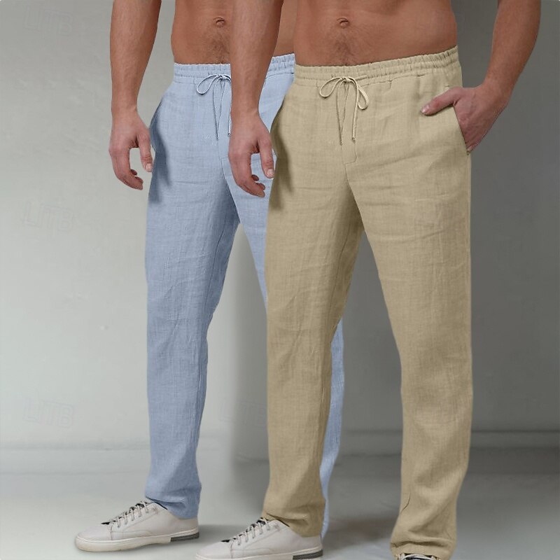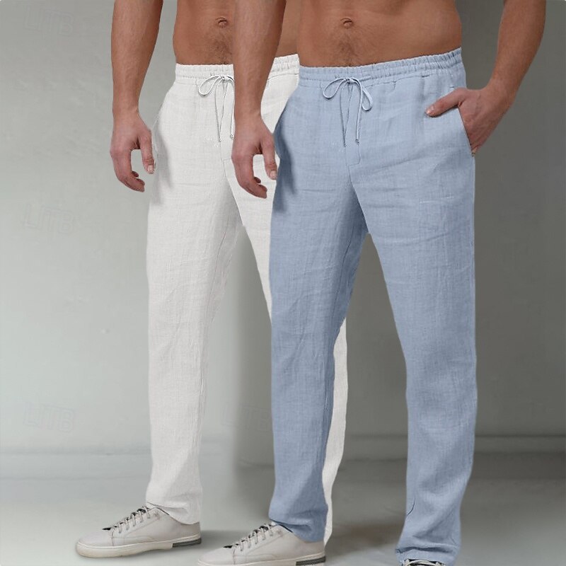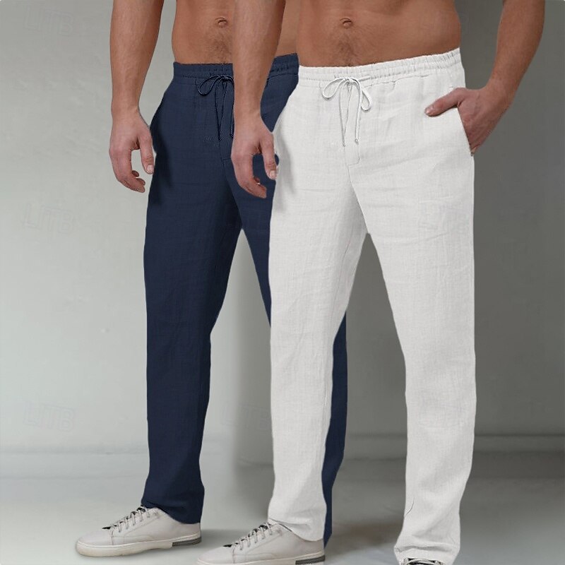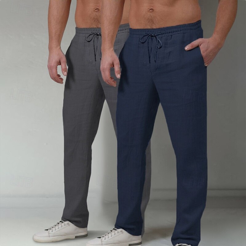 Why Choose Men's Linen Pants Trousers Summer Pants Beach Pants Elastic Waist Drawstring Plain Comfort Full Length Outdoor Casual Daily Vacation Streetwear White+Navy Blue Navy Blue+Dark Gray Inelastic?