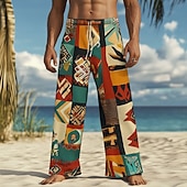 Why Choose Men's Color Block Patchwork Trousers Casual Pants Drawstring Elastic Waist Hawaiian Ethnic Vintage Retro Outdoor Vacation Holiday Side Pockets Straight Leg Trousers Summer Spring Fall 3D Print Blue?