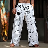 Why Choose Men's Abstract Hippie Line Trousers Casual Pants Drawstring Elastic Waist Vintage Retro Outdoor Vacation Holiday Side Pockets Straight Leg Trousers Summer Spring Fall 3D Print White?
