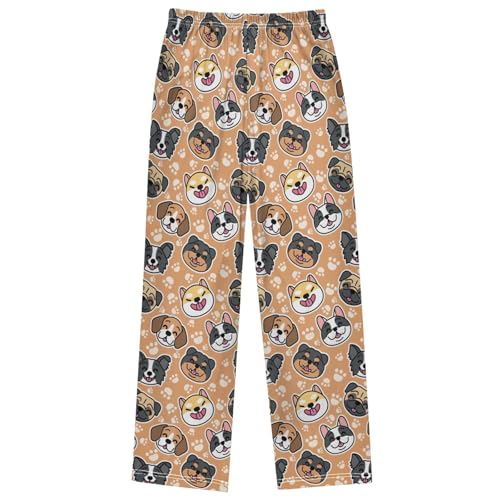 Boy's Pj Pants Happy Dog Face Lounge Bottoms Elastic Waist Kids Joggers with Pockets Size 6-14