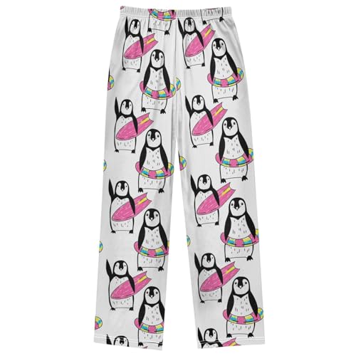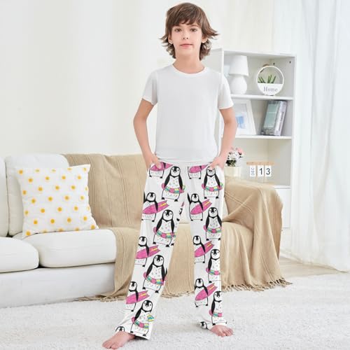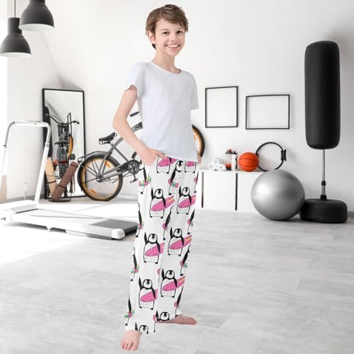 Boy's Pj Pants Penguin Pink Life Buoy Surfboard Lounge Bottoms Elastic Waist Kids Joggers with Pockets Size 6-14