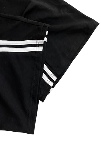 DINGANG Womens Wide Leg Cargo Sweatpants Elastic Waisted Baggy Striped Denim Patchwork Pants with Pockets