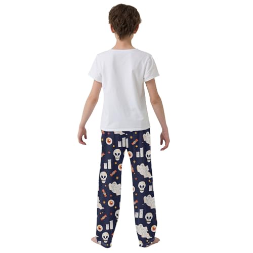 Boys' Pants Halloween Pumpkin Ghost Skull Web Candy Bat Long Bottoms Elastic Waist Trousers with Pockets S-XL
