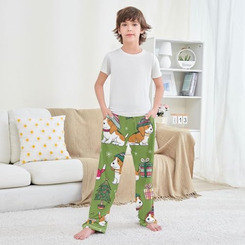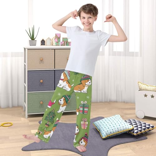ZZXXB Lovely Beagle Xmas Trees Boys Long Pants smooth Trousers Elastic Waist Kids Lounge Bottoms with Pockets S-XL