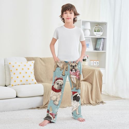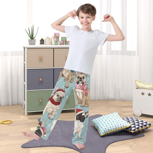 ZZXXB Xmas French Bulldog Pattern Boys Long Pants silky Trousers Elastic Waist Kids Lounge Bottoms with Pockets S-XL
