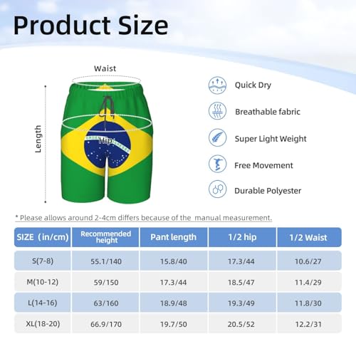 Brazilian Flag Youth Beach Pants, silky and Breathable, with Drawstring Waist, Suitable for Sports and Leisure.