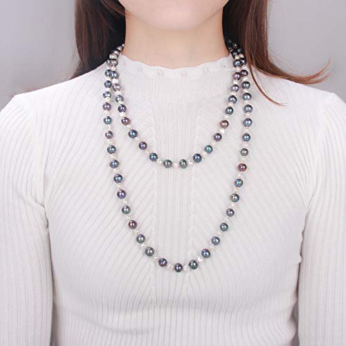 • Necklace length: 48 inch, weight: 98.5g, pearl size: 6-7mm, 9-10mm, please allow a little deviation when using different measure tools