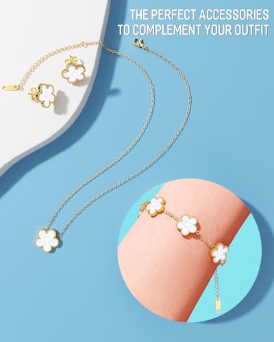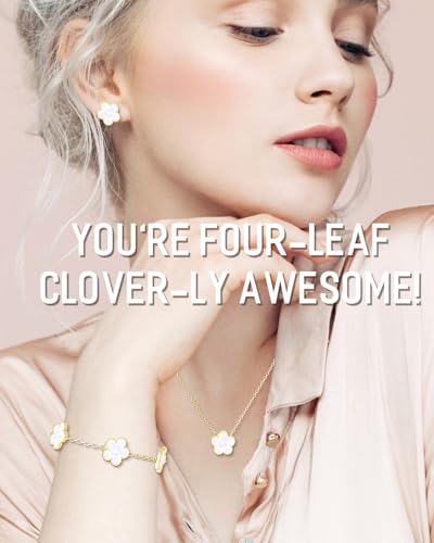 AICase Clover Jewelry Set,18K Gold Plated Lucky Clover Bracelet,Four Leaf Clover Necklace and Clover Earrings Fashion Jewelry Sets Gifts for Women/Mon